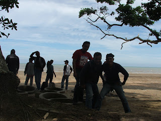 Memang, tidak seperti yang dibayangkan turing kali ini banyak kejadian yang tak disangka-sangka yang menghambat perjalanan. Ada yang tersesat (baca: survey jalur turing baru) hingga ke Muara Badak. Pelajaran no.17: Jangan berpisah dari rombongan atau turing sendirian. Saat rehat di perumahan pertamina Sangata, satu helm di atas motor yang parkir di halaman rumah raib. Pelajaran no.18: Daerah yang (dianggap) aman, ternyata bisa tidak aman. Waspadalah..waspadalah. Dalam perjalanan pulang persis di depan gerbang perum Pertamina EP Sangata, ban roda belakang tiger bro Solli kempes. Setelah bersusah payah membongkar ban, ternyata apadaya alatnya tidak memadai. Akhirnya dengan sisa-saia angin meluncur mencari tukang tambal ban yang katanya pak sekuriti sekitar 5 kiloan jaraknya. Tak sampe semenit meluncur, ternyata ada tukang tambal ban. Alhamdulillah. Pelajaran no.19: Sebelum melakukan tindakan, lebih baik dilakukan survey dulu apakah ada bengkel terdekat dengan kata lain kenali daerah sekitar. Bro Adi mengalami masalah dengan Thunder 250nya. Oli mengucur cukup deras sepanjang perjalanan sehingga tidak bisa melaju dengan kecepatan penuh. Masalah belum habis sampe disitu, box Vixion Wawan terjatuh karena braketnya patah.